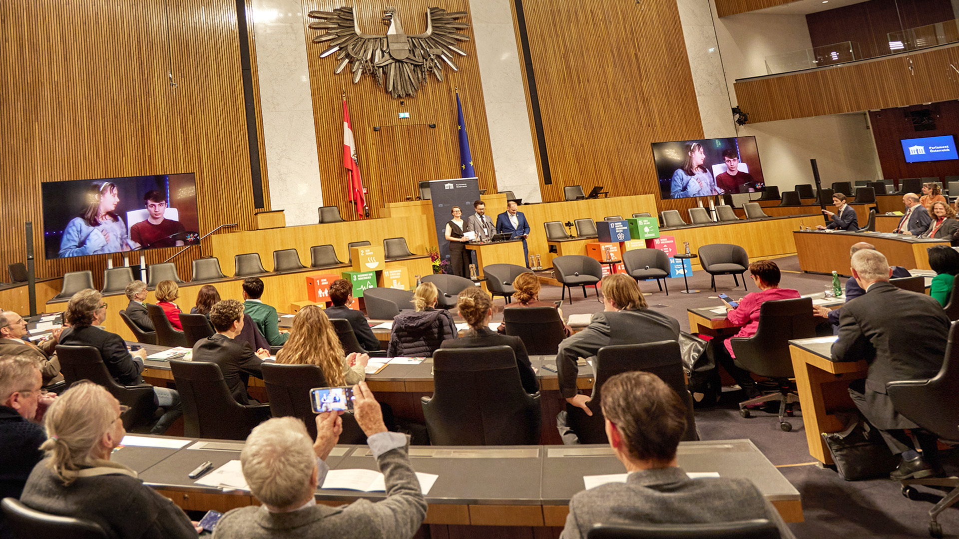 7 Minuten — 7 Ziele: UniNEtZ präsentierte am 27. Februar 2024 im Plenarsaal des Österreichischen Parlaments Optionen zur Umsetzung von 7 SDGs in Österreich Abend der SDGs im Österreichischen Parlament
