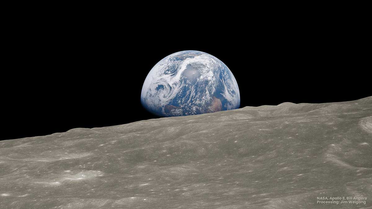 Am 24. Dezemeber 1968 fotografierte der Astronaut Bill Anders während der Apollo 8 Mission den Aufgang der Erde am Horizont des Mondes. Diese Fotografie ging unter dem Namen Earthrise in die Geschichte ein und gilt als Initialzündung des Umweltbewußtseins der Menschen und als Beginn der globalen Umweltbewegungen.