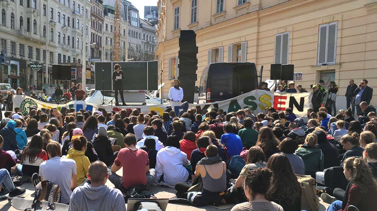 Die ersten weltweiten Klimastreiks finden statt, Schulkinder gemeinsam mit Scientists4Future gehen auf die Straße.